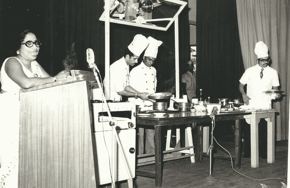 bakery demo for actress Tanuja on right with Ms Philip at the center
