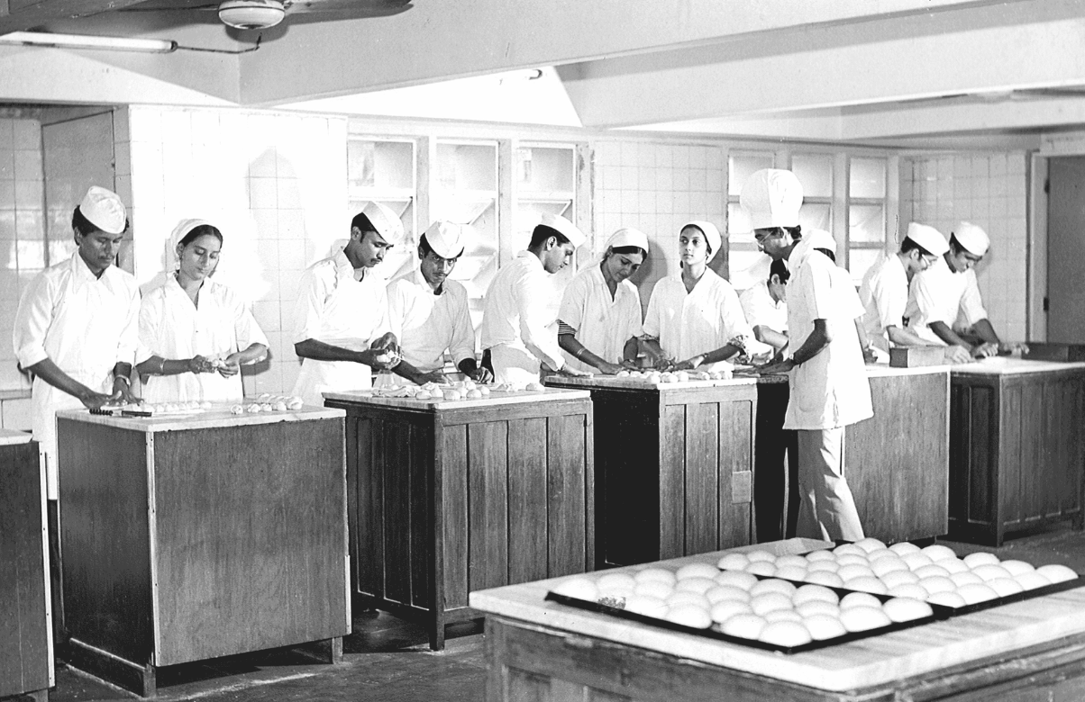 bakery demo for actress Tanuja on right with Ms Philip at the center